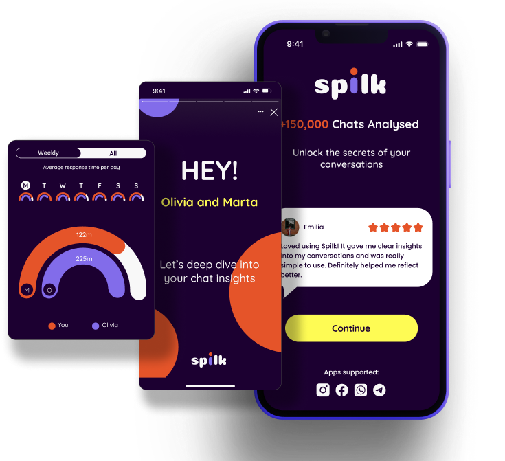 Spilk is an phone application that uses AI in order to analyse your chats and extract relevant and interesting insights such as: